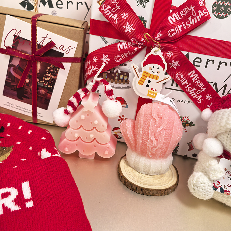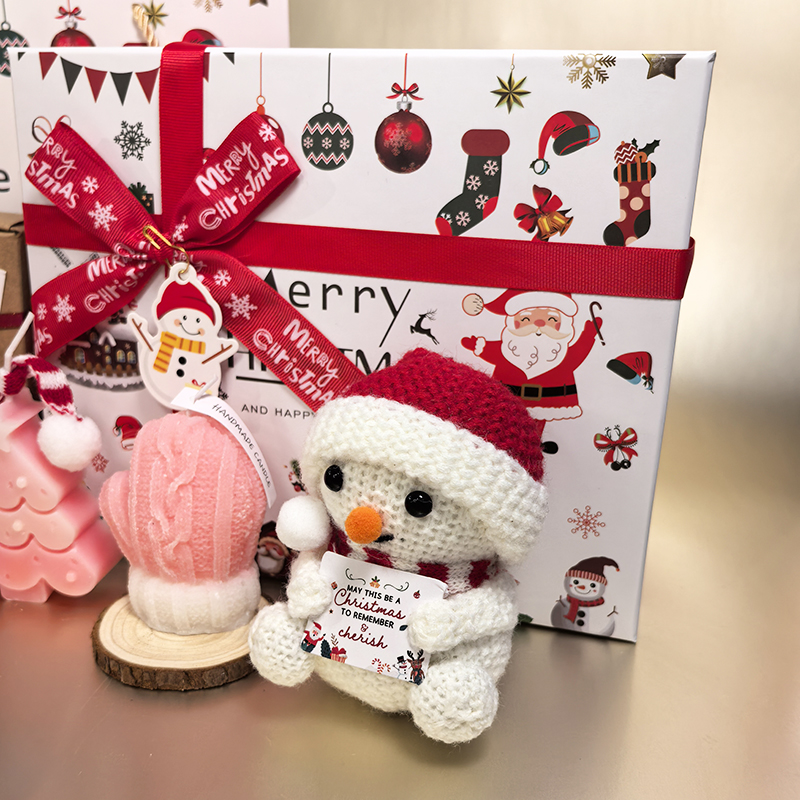 Christmas gift box set, desktop cute crochet toy ornament, Christmas hat with LED light, creative glove design, aromatherapy candle for friends, relatives, children, boys and girls, New Year gift box
