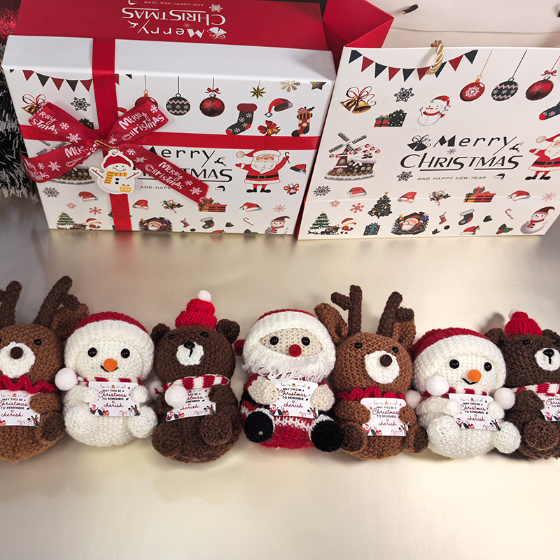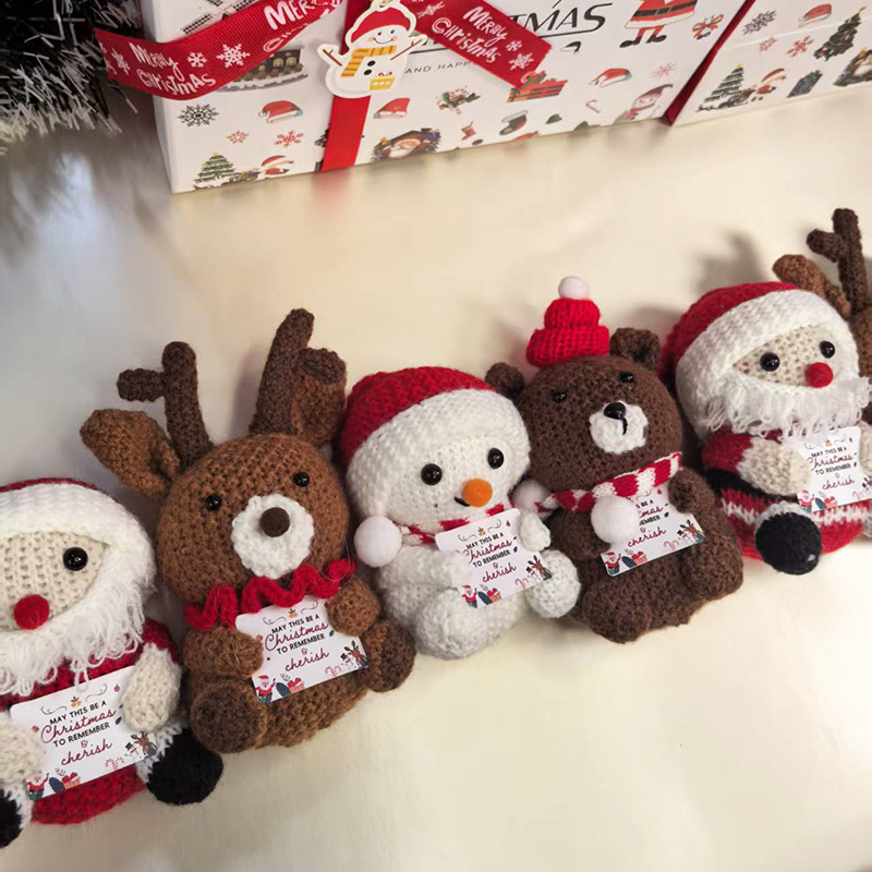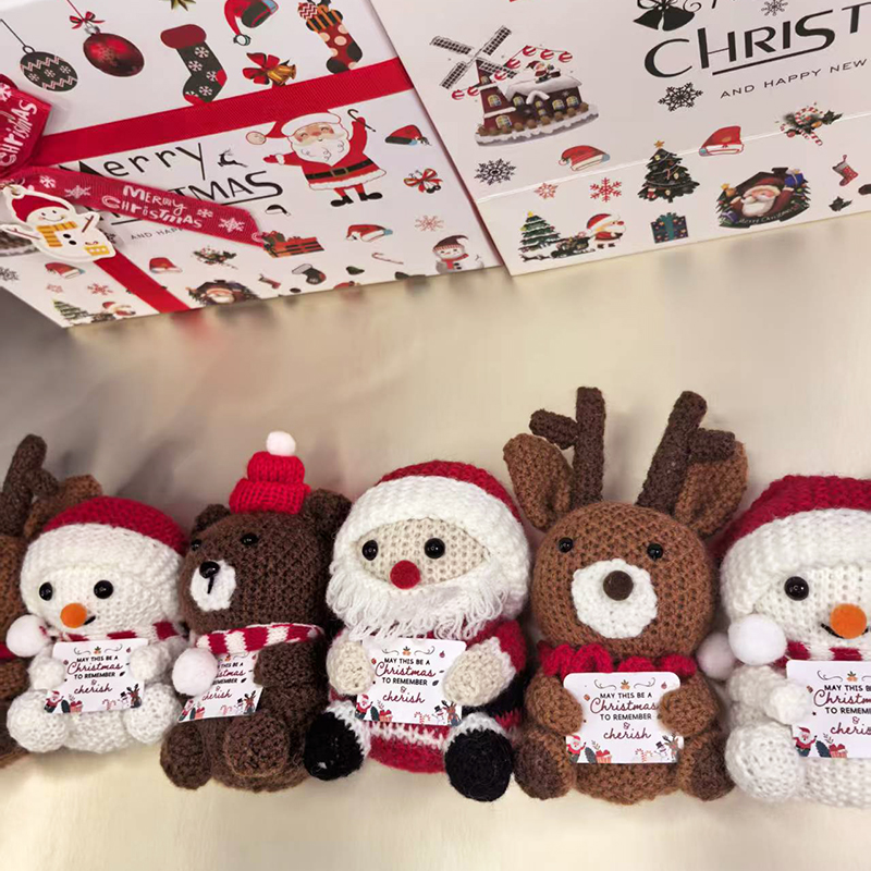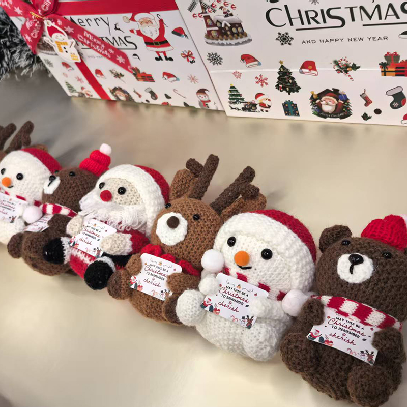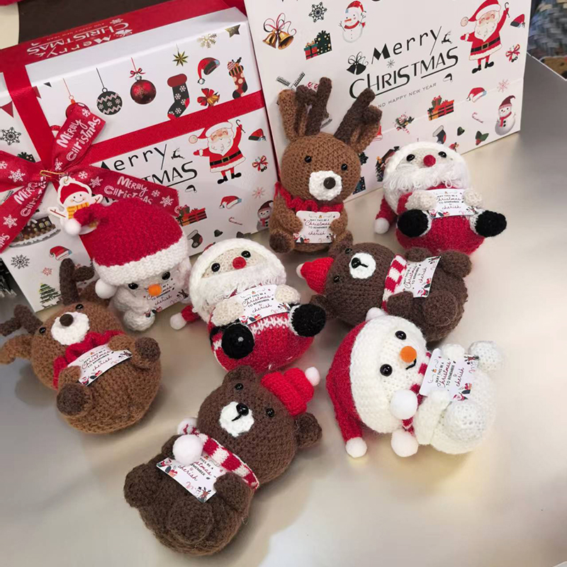 Christmas gift box set for boys and girls, beautiful, exquisite and cute woolen crochet dolls, small ornaments, Santa Claus snowman, brown bear collection, suitable for giving to friends. Give 1 to 2 children to her, give him a New Year gift box