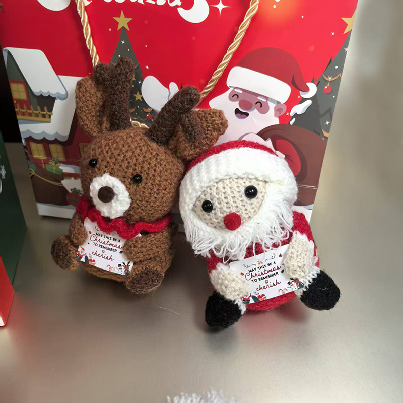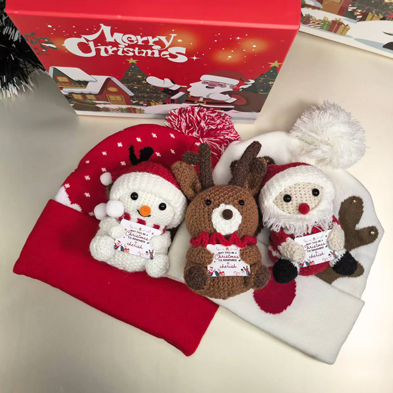 Christmas gift box set for New Year, Christmas hats, yarn hooks, woven dolls, small ornaments, Santa Claus snowman, small brown bear, handmade decoration, collection, suitable for giving to friends, relatives, children, present box , New Year gifts