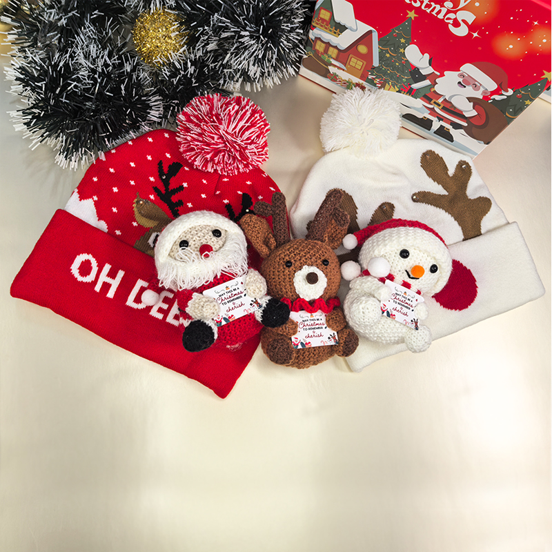 Adaptation scenario: Christmas daily decoration and wearing, warm and breathable jacquard hats with LED lights, adding a comfortable and happy festive atmosphere for children. Cute crochet doll ornaments also add joy to the home. They will be good companions for children, and adults can also collect them, arousing our inner desire and cherish for happiness. This is a special gift that is perfect for giving to children, family, and loved ones around you. It is a healing and joyful Christmas gift.