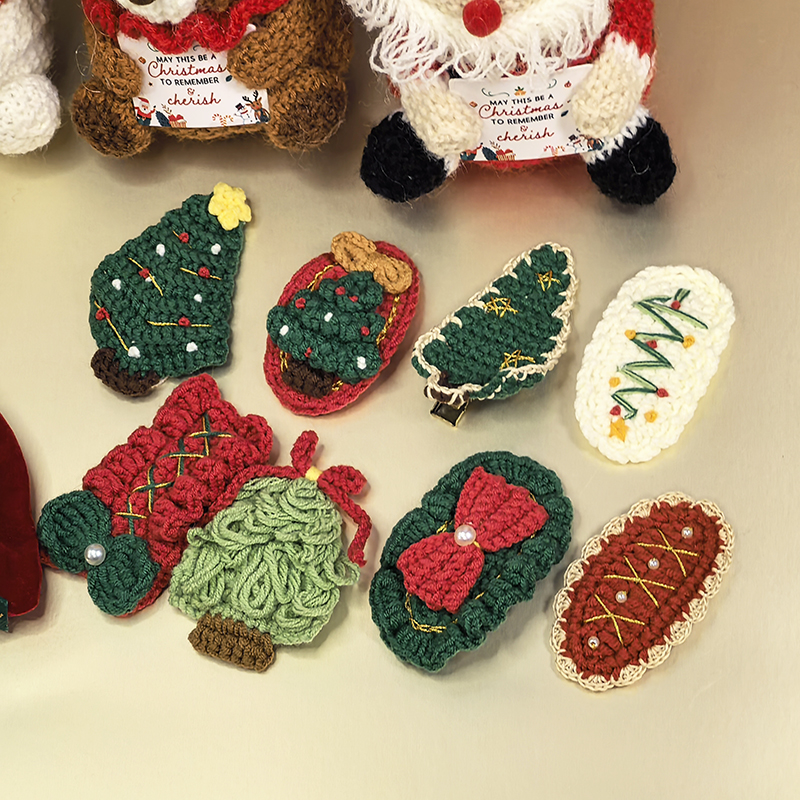 1. Christmas crochet hair clip (for girls' headwear decoration)