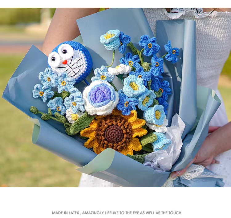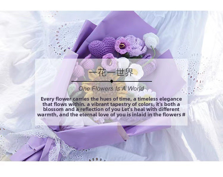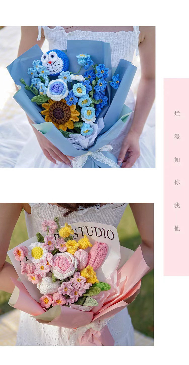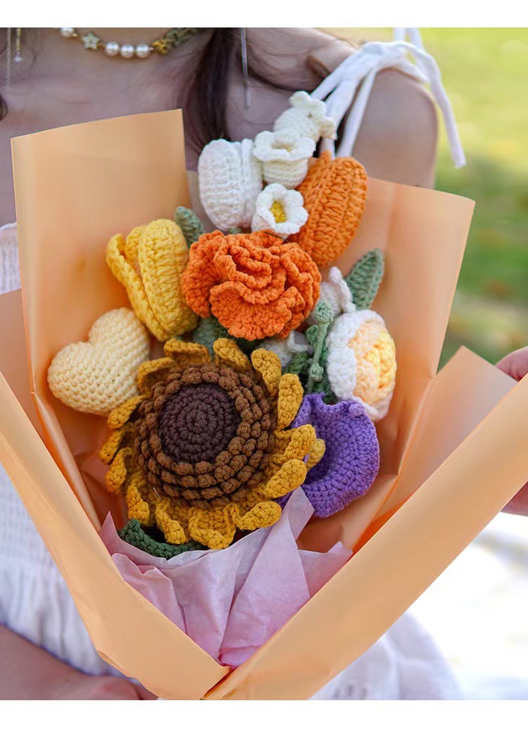 DIY hand woven love bouquet birthday gift customization wholesale high-end warm yarn crochet rose tulip sunflower orchid lily eternal flower Valentine's Day friend gift Mother's Day Thanksgiving Christmas gift bag
