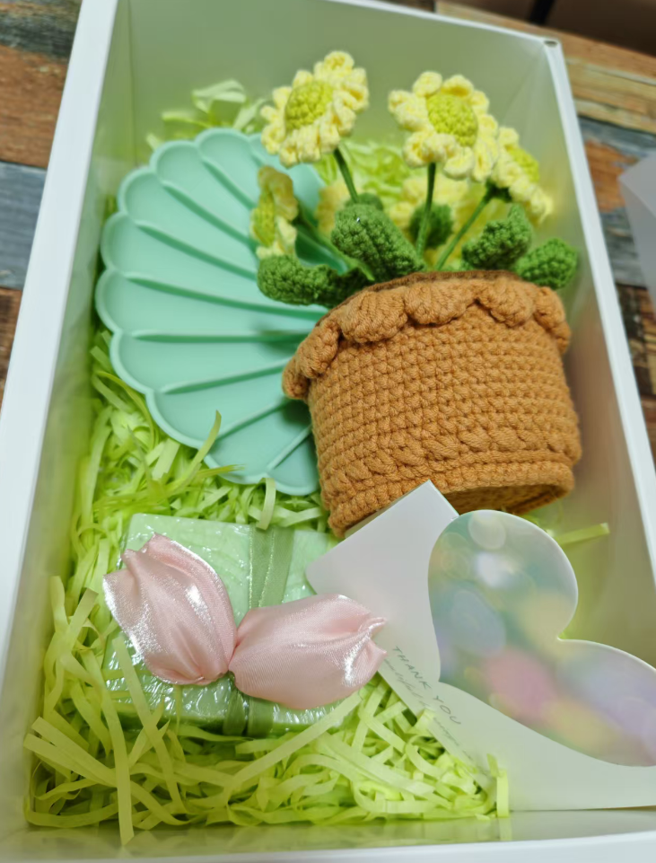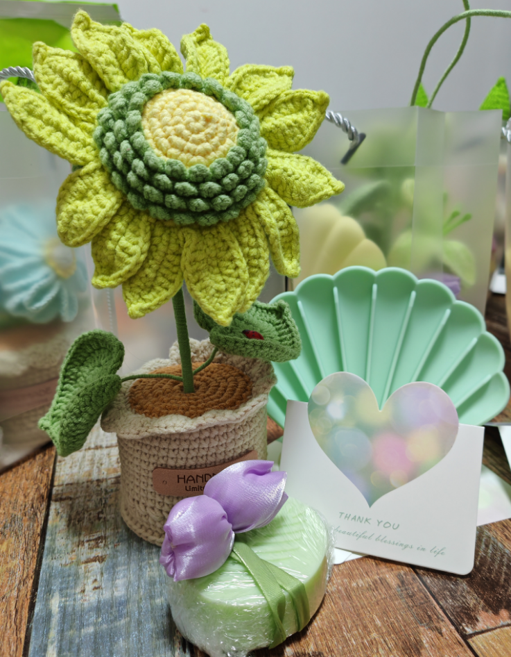 Handmade crochet sunflower potted plant Christmas and New Year gift bag, yarn flower eternal life flower ornament, crochet potted plant gift wholesale customization, a special birthday gift, gratitude gift box
