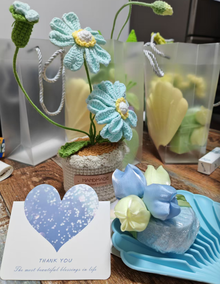 Product features: Hook woven flower bouquets are not easy to wither and can be retained for a long time (can be used as decorative ornaments, desk decorations, etc.). Friends and classmates can "repeatedly touch memories" after receiving them; It is very suitable for giving gifts to elders, relatives, teachers, friends, etc. The handmade texture of crocheted flowers comes with a "retro/healing" atmosphere, which is both practical and worth commemorating.