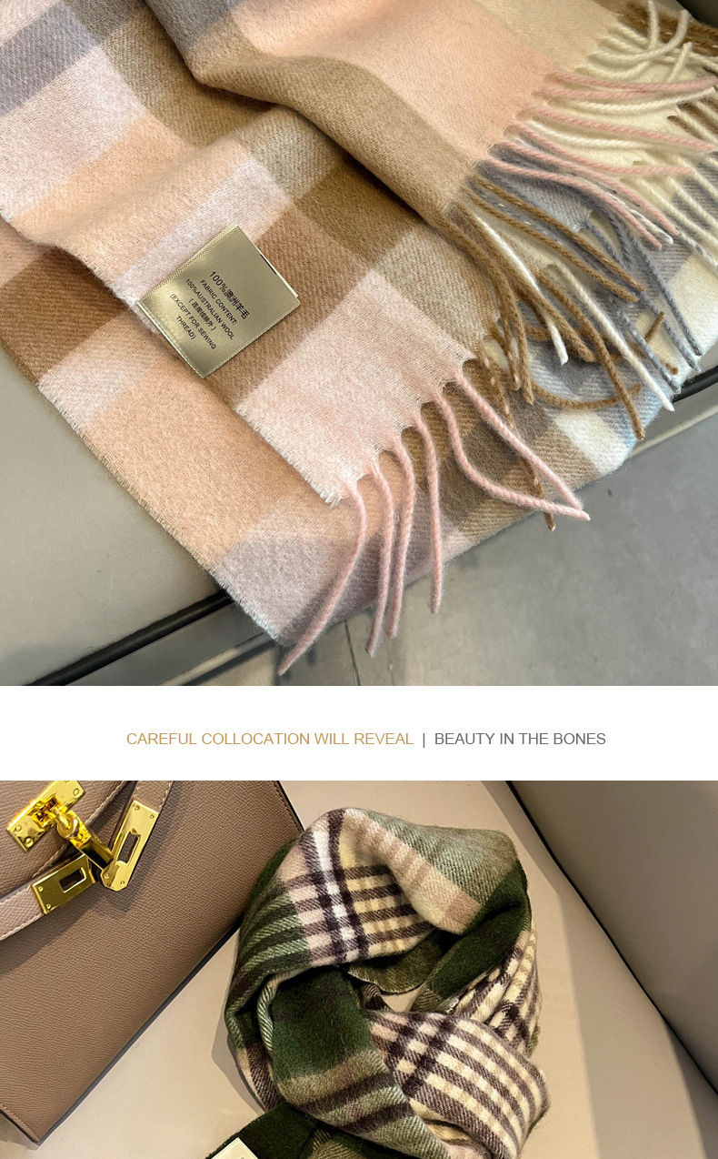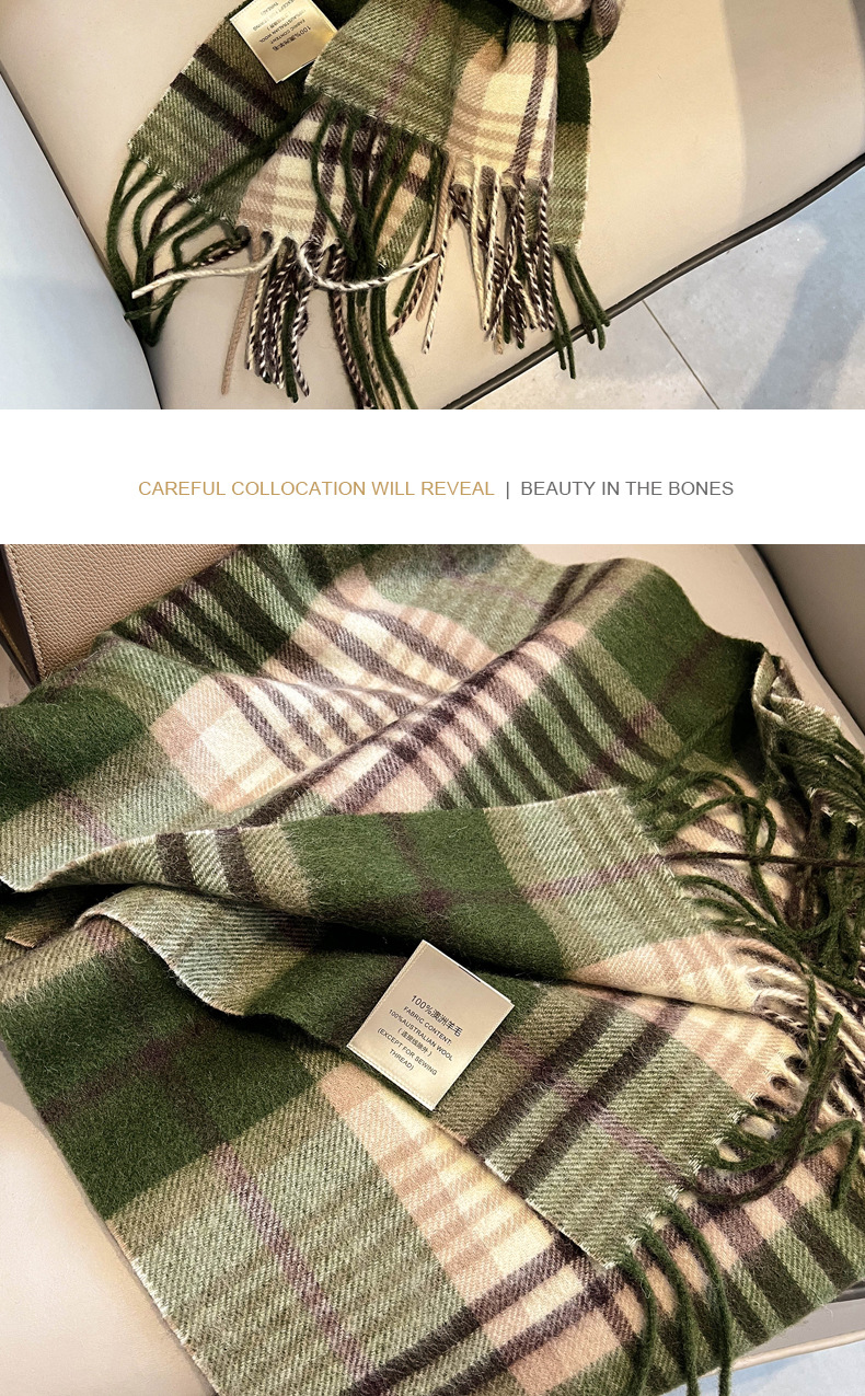 Women's scarf, unisex style, cowhide oil fruit green, pure wool, winter narrow scarf, versatile, warm, high-end scarf from England, perfect gift for boyfriend, girlfriend, friend, classmate
